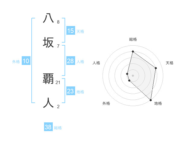 八坂 覇人さんの総格は38画の4点!