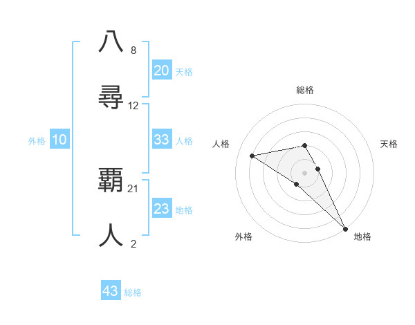 八尋 覇人さんの天格は20画の1点!