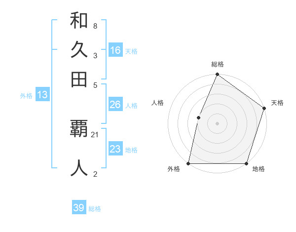 和久田 覇人さんを姓名の画数から五運を鑑定