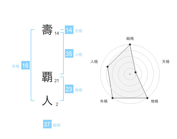 壽 覇人さんの総格は37画の5点!
