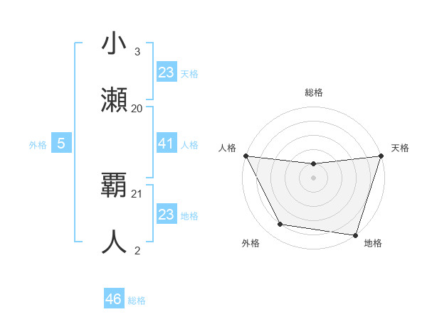 小瀬 覇人さんを姓名の画数から五運を鑑定
