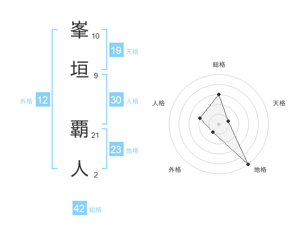 峯垣 覇人さんを姓名の画数から五運を鑑定