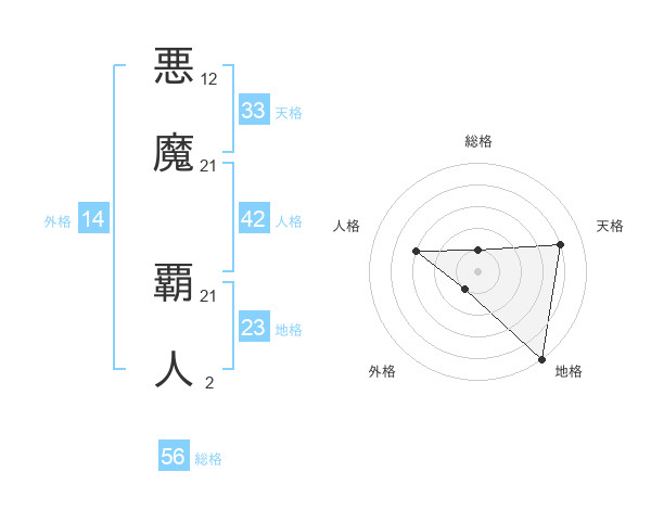 悪魔 覇人さんの総格は56画の1点!