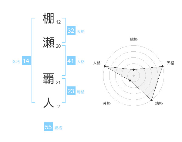 棚瀬 覇人さんを姓名の画数から五運を鑑定