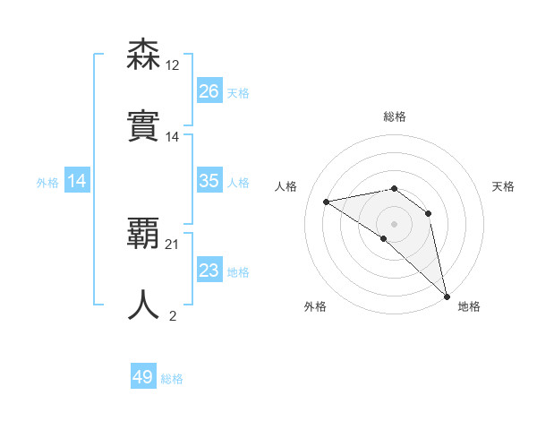 森實 覇人さんを姓名の画数から五運を鑑定