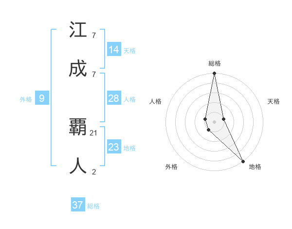 江成 覇人さんの総格は37画の5点!