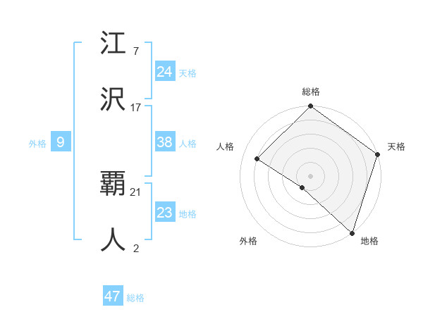 江沢 覇人さんの総格は47画の5点!