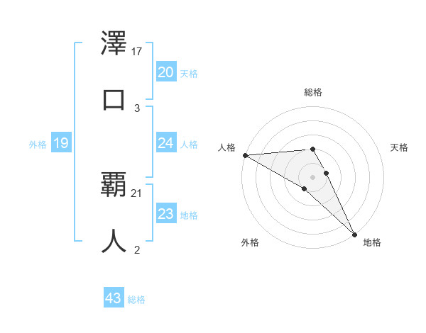 澤口 覇人さんを姓名の画数から五運を鑑定