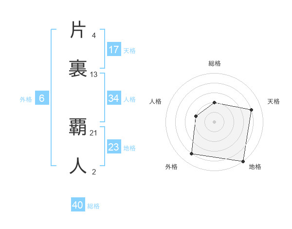 片裏 覇人さんを姓名の画数から五運を鑑定
