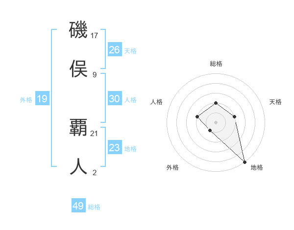 磯俣 覇人さんを姓名の画数から五運を鑑定