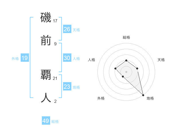 磯前 覇人さんの総格は49画の2点!