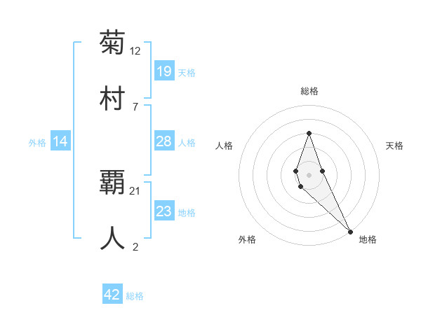 菊村 覇人さんの総格は42画の3点!