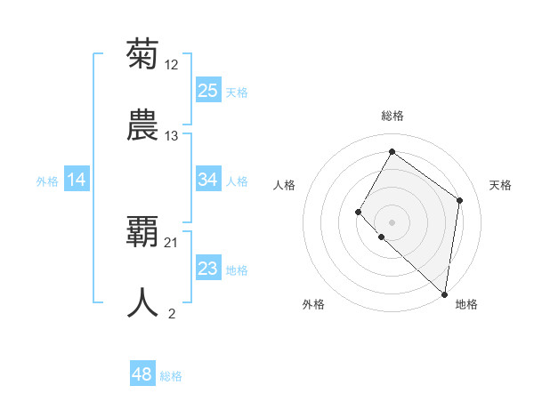 菊農 覇人さんを姓名の画数から五運を鑑定
