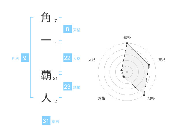 角一 覇人さんの総格は31画の5点!