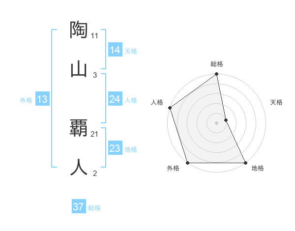 陶山 覇人さんを姓名の画数から五運を鑑定