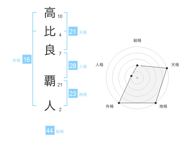 高比良 覇人さんの天格は21画の5点!