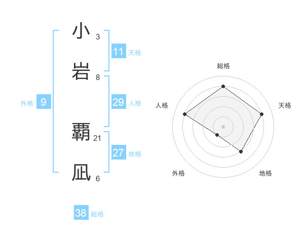 小岩 覇凪さんを姓名の画数から五運を鑑定