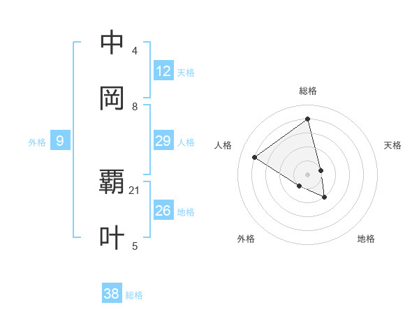 中岡 覇叶さんの総格は38画の4点!