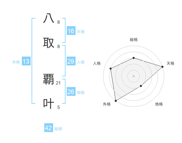 八取 覇叶さんの外格は13画の5点!