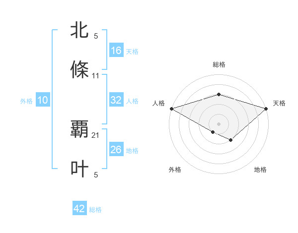 北條 覇叶さんの天格は16画の5点!