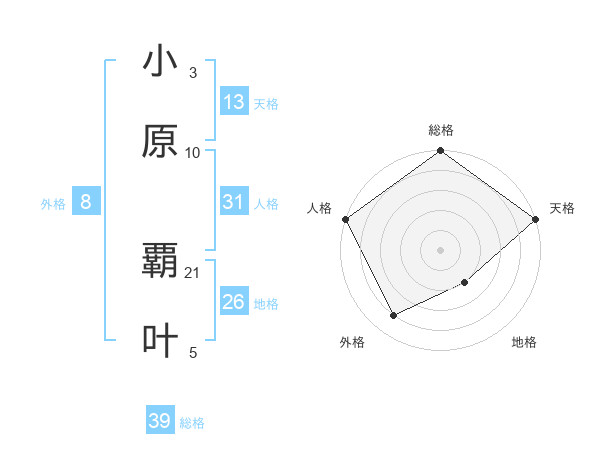 小原 覇叶さんの総格は39画の5点!