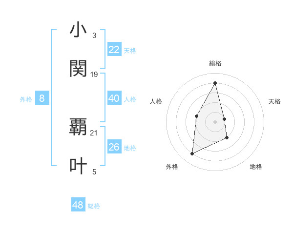 小関 覇叶さんを姓名の画数から五運を鑑定