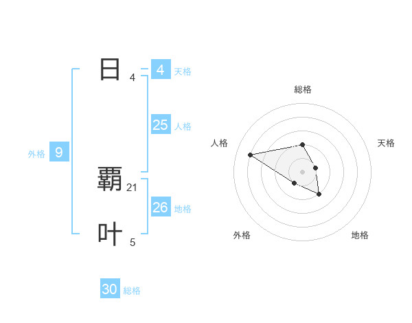 日 覇叶さんの総格は30画の2点!