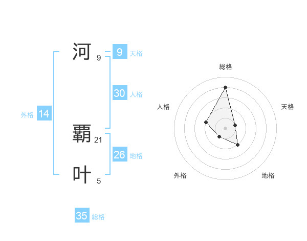 河 覇叶さんの総格は35画の4点!