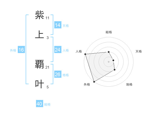紫上 覇叶さんの総格は40画の2点!