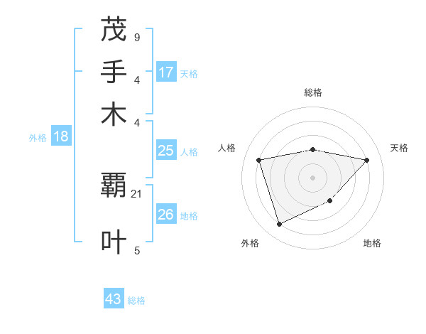 茂手木 覇叶さんを姓名の画数から五運を鑑定