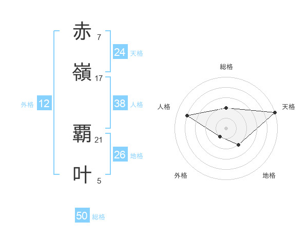 赤嶺 覇叶さんを姓名の画数から五運を鑑定