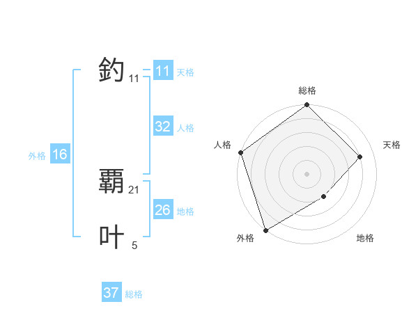 釣 覇叶さんの総格は37画の5点!