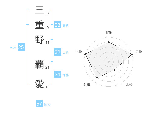 三重野 覇愛さんを姓名の画数から五運を鑑定