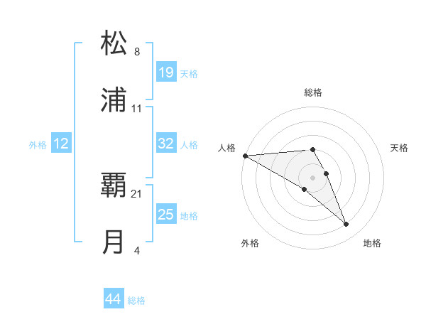 松浦 覇月さんを姓名の画数から五運を鑑定