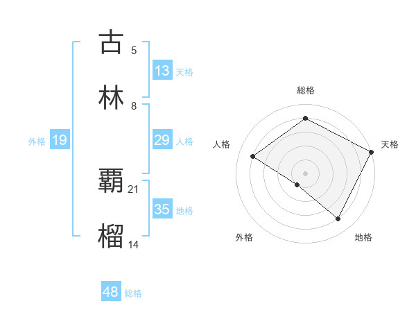 古林 覇榴さんを姓名の画数から五運を鑑定