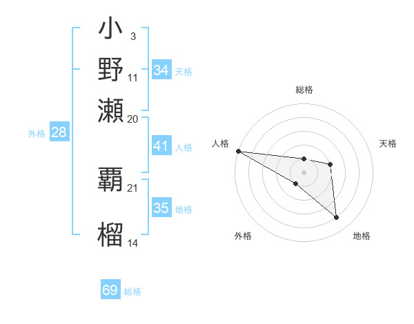 小野瀬 覇榴さんを姓名の画数から五運を鑑定