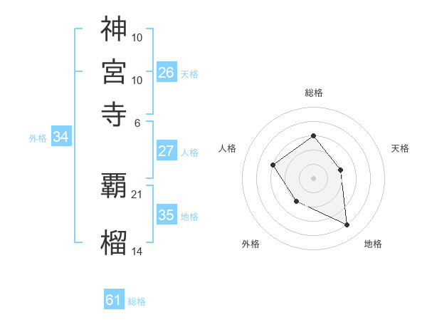 神宮寺 覇榴さんを姓名の画数から五運を鑑定