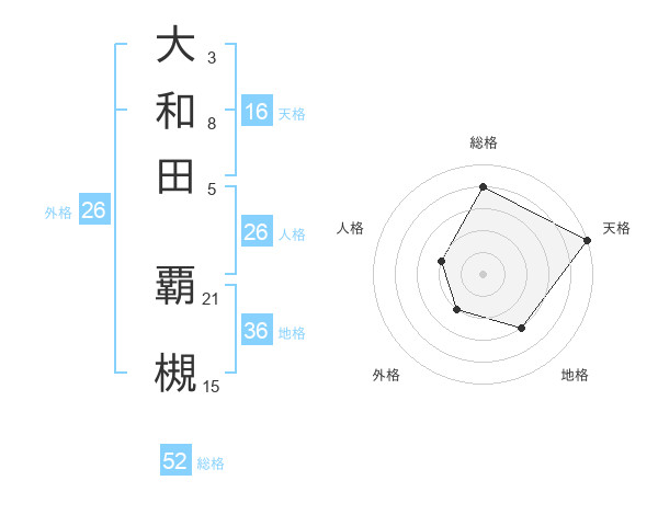 大和田 覇槻さんの総格は52画の4点!