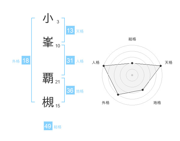 小峯 覇槻さんを姓名の画数から五運を鑑定