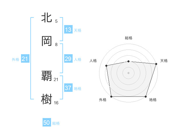 北岡 覇樹さんの総格は50画の2点!