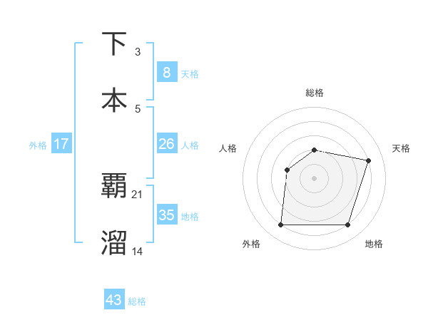 下本 覇溜さんを姓名の画数から五運を鑑定