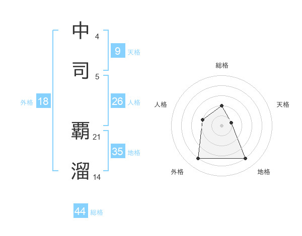 中司 覇溜さんの外格は18画の4点!