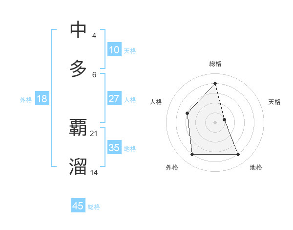 中多 覇溜さんを姓名の画数から五運を鑑定
