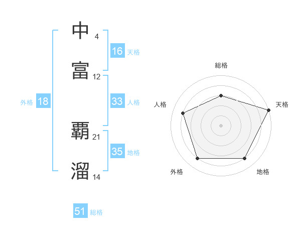 中富 覇溜さんの総格は51画の3点!