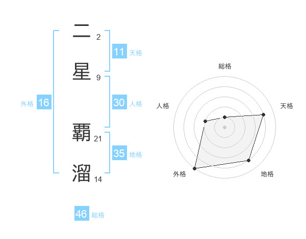 二星 覇溜さんの総格は46画の1点!