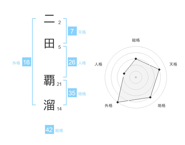 二田 覇溜さんを姓名の画数から五運を鑑定