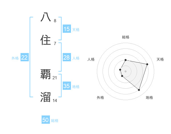 八住 覇溜さんを姓名の画数から五運を鑑定