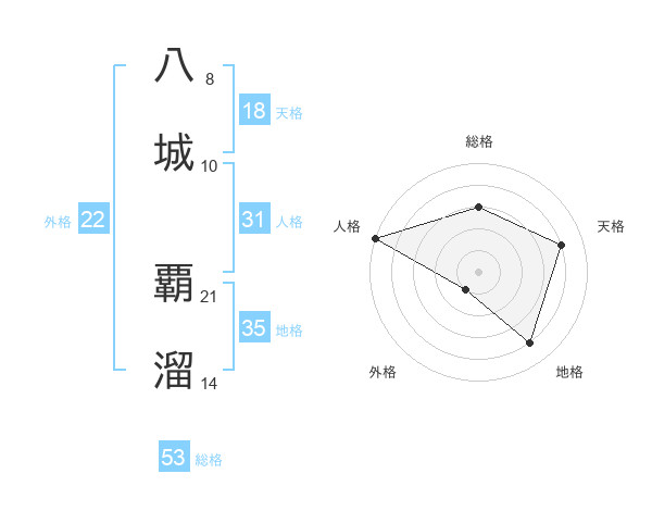 八城 覇溜さんの総格は53画の3点!