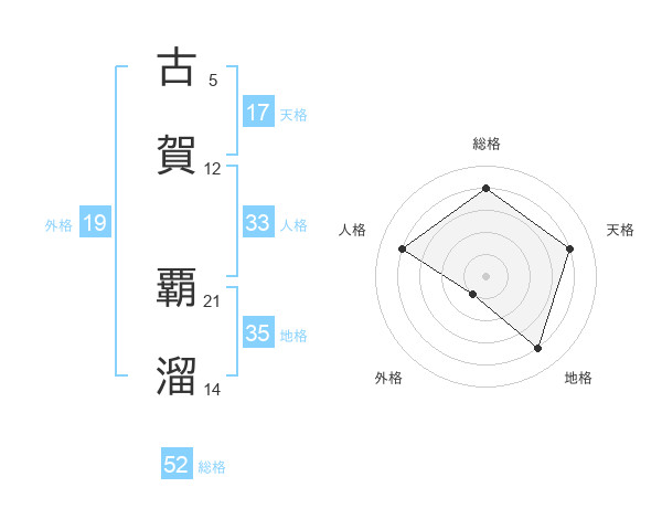 古賀 覇溜さんを姓名の画数から五運を鑑定