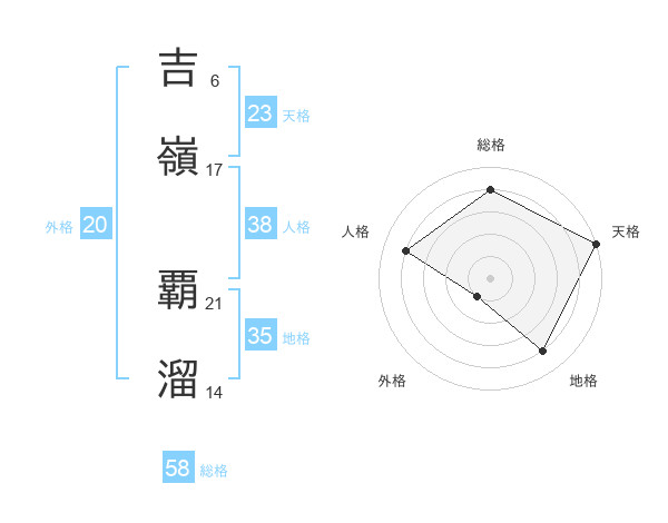吉嶺 覇溜さんの総格は58画の4点!